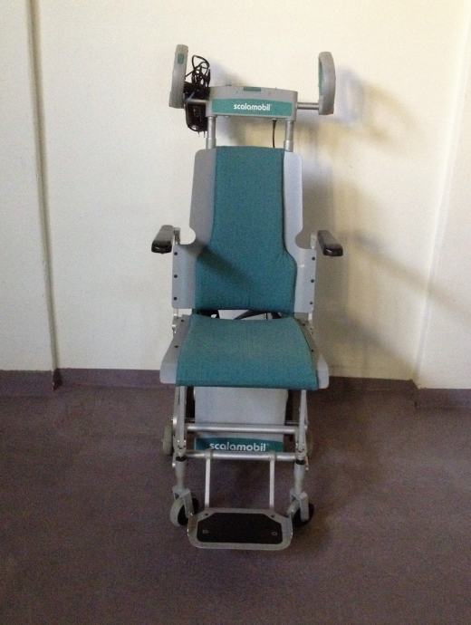 Prodajemo polovni scalamobil. To je uređaj na elektro pogon punjive baterije za prijevoz nepokretnih osoba po stepenicama,uređaj može nositi max. težinu do 120 kg