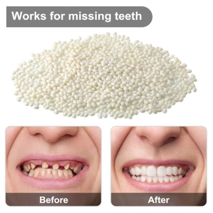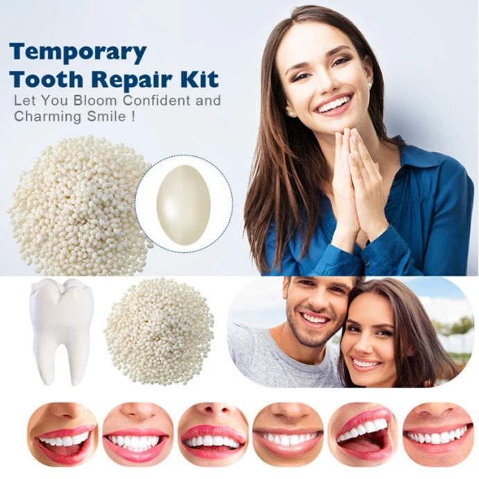 Pukao vam je zub a imate neodgodive obaveze?. Najjednostavnije privremeno riješenje, akrilni materijal u kuglicama koji u vreloj vodi omekša i kojega sami modelirate da sakrijete zub koji je pukao. Pogledajte u priloženom videu kako se lako koristi. Cijena 15 eura + poštarina.