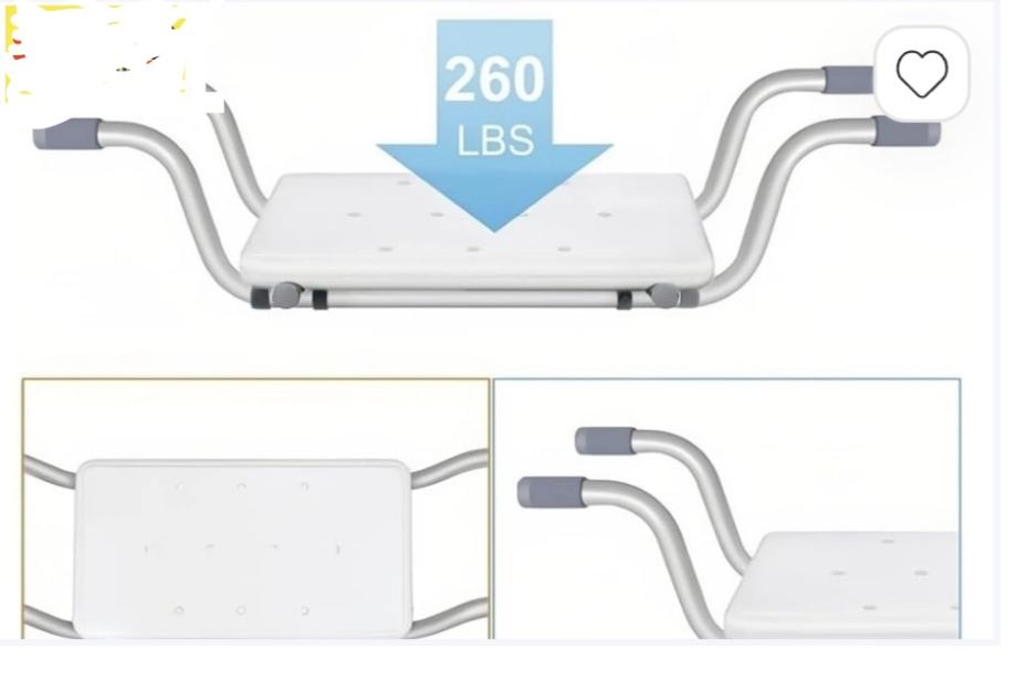 NEWFUN sjedalo za kadu, stolica za kadu za starije osobe, aluminijsko viseće sjedalo za kadu, produljivo, s 3 podesive širine, za kadu, nosivost 136 kg, bijela