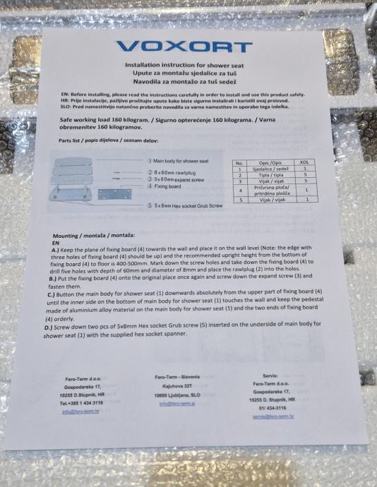 Clinic Voxort sklopiva sjedalica za tuš kabinu ili kadu pruža udobno i sigurno sjedalo tijekom tuširanja. Idealno za starije osobe, osobe s otežanom pokretljivošću ili osobe koje se oporavljaju od ozljeda.
