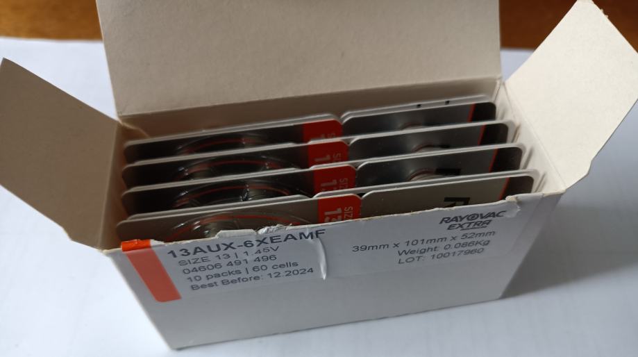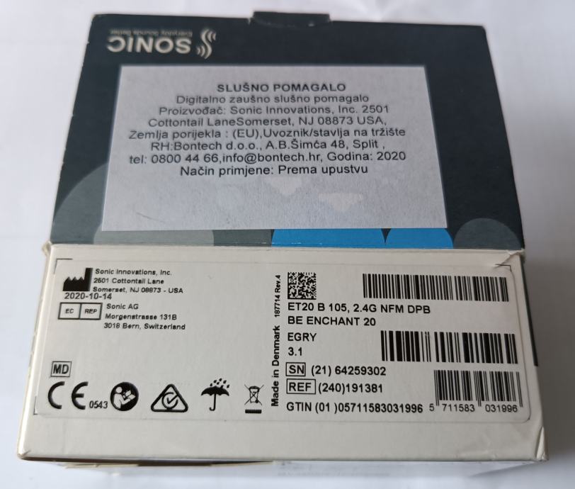 Prodajem 2 slušna aparata Bontech američke proizvodnje kupljena prije godinu dana, upotrebljeno 20-tak puta. Aparati su doslovno novi, uz njih darujem 48 baterija Rayovac (vrijednost cca 400 kn). Cijena jednog aparata u trgovinama je oko 3500 kn. Oba aparata prodajem za 2000 kn (osoba koja je povremeno koristila aparat je preminula). Garancija istekla prije mjesec dana. Cijena jednog aparata je 1300 kn + 24 baterije gratis.