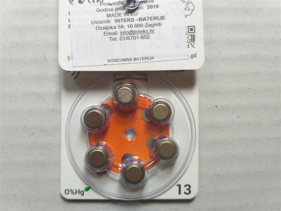 Jedva da je korišten, potrošen jedan paketić od 6 baterija. Dajem uz njega dva paketa baterija (12 kom) cink-zrak veličina 13.