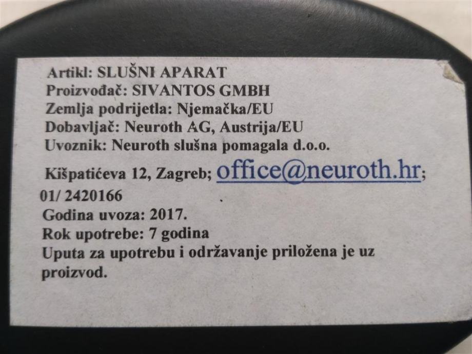 Prodajem zaušni slušni aparat Siemens Signia Prompt P model iz 2016-te, kupljen u Neuroth Zagreb 2017.g.