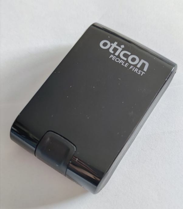 Slušni aparat OTICON INO pripadajućom kutijicom za spremanje.