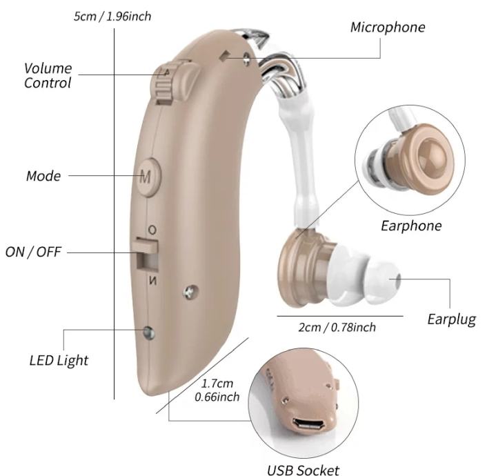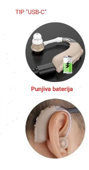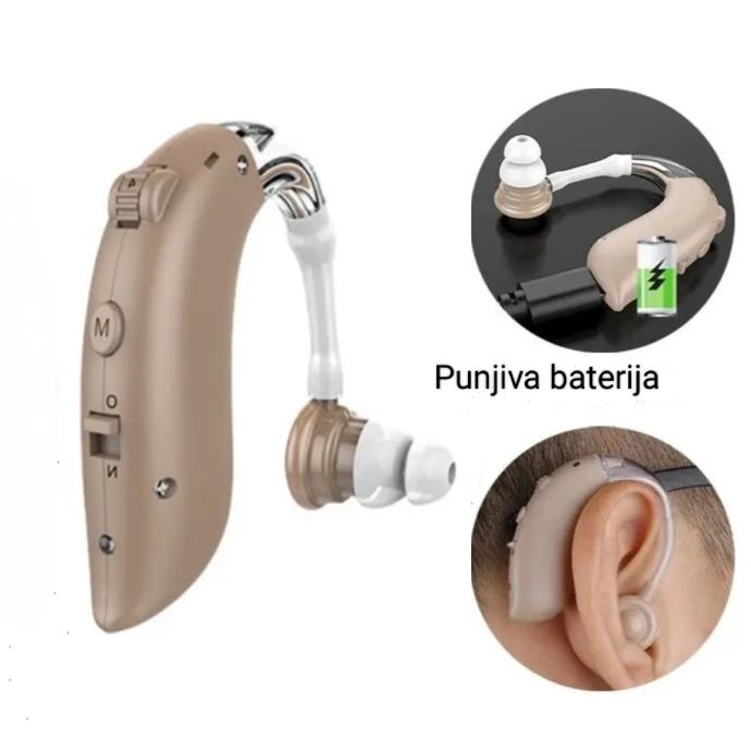 Punjivi slušni aparat u boji kože za osobe oštećenog sluha.