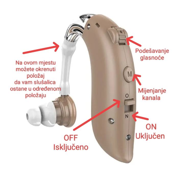 Ovaj aparatić možete prilagoditi za lijevo ili desno uho jer mu se slušna tubica može rotirati za 180 stupnjeva.