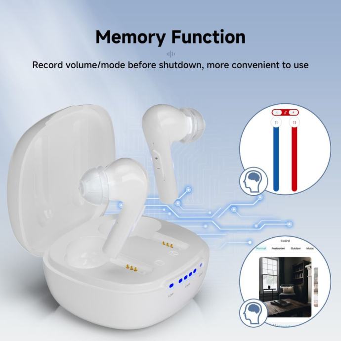 Ako tražite praktično i učinkovito rješenje za poboljšanje sluha kod kuće, uz maksimalnu udobnost i jednostavnost korištenja, na pravom ste mjestu. Naš komplet uključuje Bluetooth TWS slušne aparate s automatskim podešavanjem putem aplikacije HearingSense i bežične TV slušalice TA008 – idealan paket za svakodnevnu upotrebu, posebno za starije osobe.