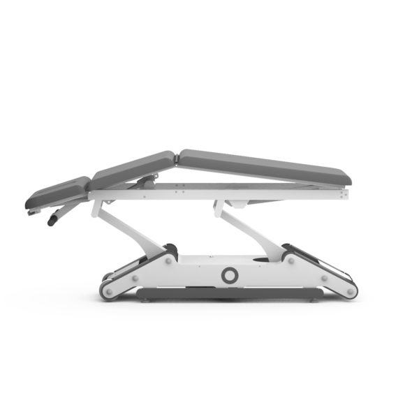 Električni stol za terapiju N’GO304 sastoji se od 3 odjeljka, a ističe se zbog svoje fleksibilnosti, odnosno mogućnosti namještaja više položaja.