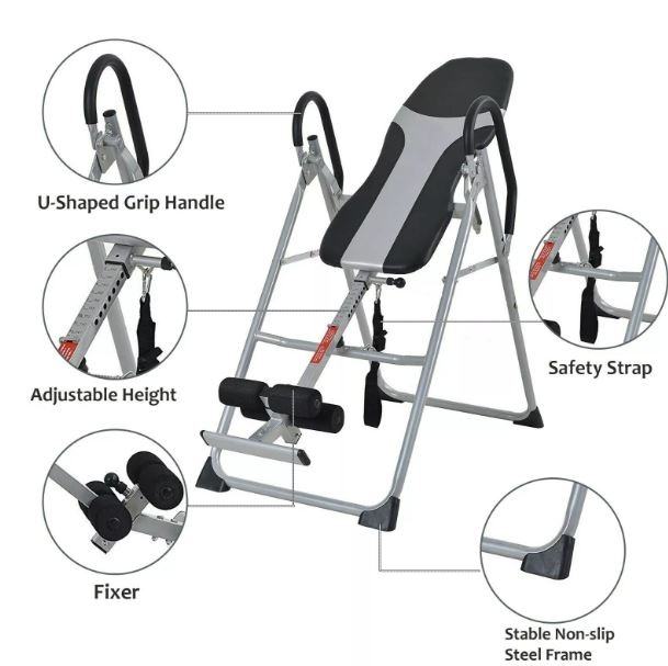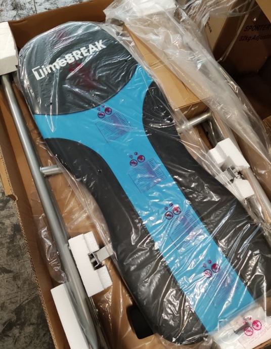 Inversion stol za istezanje i opuštanje zarobljenih živaca i mišića leđa. Uređaj koji vam u tome može pomoći je inverzijski stol uz upotrebu gravitacije. Istezanjem stegnutih mišića oslobađa se stegnuti živac, jer se istezanjem povećava prostor između kralježaka.Slobodno se okreće u okomiti položaj, zaustavljajući se remenom po željiDopuštena težina korisnika: 130 kgPjenasti stisak stopalaVeličina: 120 x 66 x 128Preporučena visina korisnika: do 195 cmStol je sklopivTežina: 18 kgBoja: crno-plava
