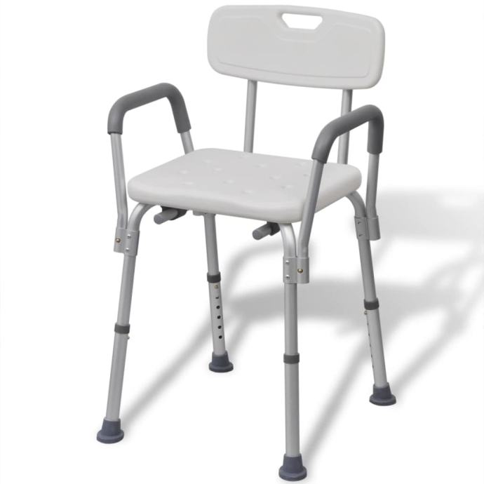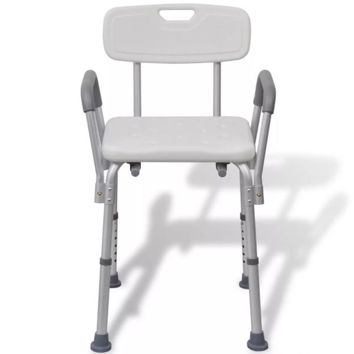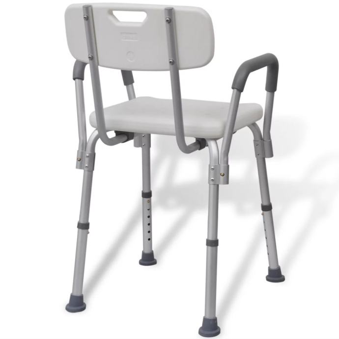 Ova izdržljiva stolica ima maksimalnu nosivost do 100 kg i može izdržati višekratnu čestu uporabu pri tušuranju. Plastično sjedalo ima rupice za odvod kako se voda ne bi skupljala i kako bi smanjili rizik klizanja. Izrađena od čvrstog aluminija, ova stolica je lagana i čvrsta. Naša stolica ima podesivu visinu a naslon se može pomjerati unazad kako bi zadovoljili vaše osobne potrebe.