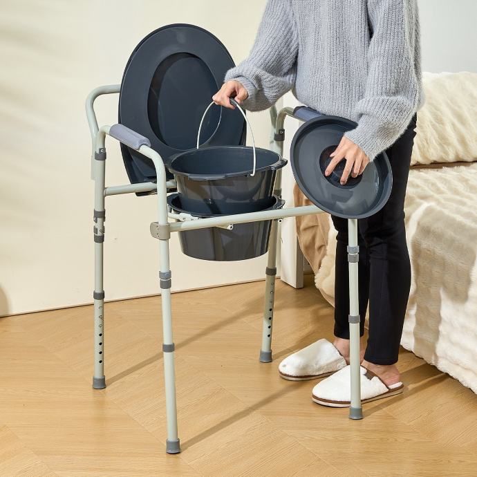 WC daska je zadebljana, a unutarnja posuda je povećana kako bi se spriječilo prskanje, smanjujući nelagodu i bol tijekom dulje upotrebe. Okvir naslona ove noćne komode je odvojiv, što pruža više prostora.