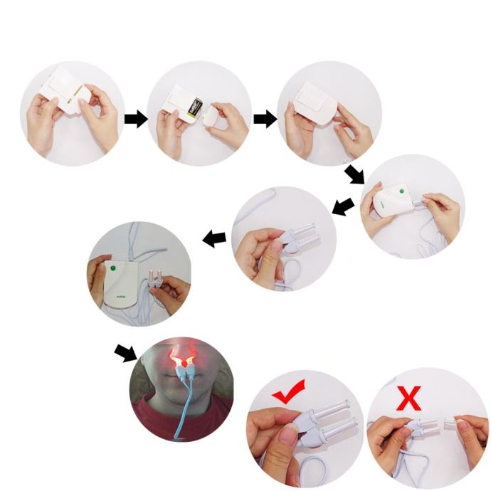 Uređaj ima terapijski učinak na ublažavanje upale sinusa koja putem specifičnih svjetlosnih frekvencija smanjuje probleme začepljenog nosa i sinusa.