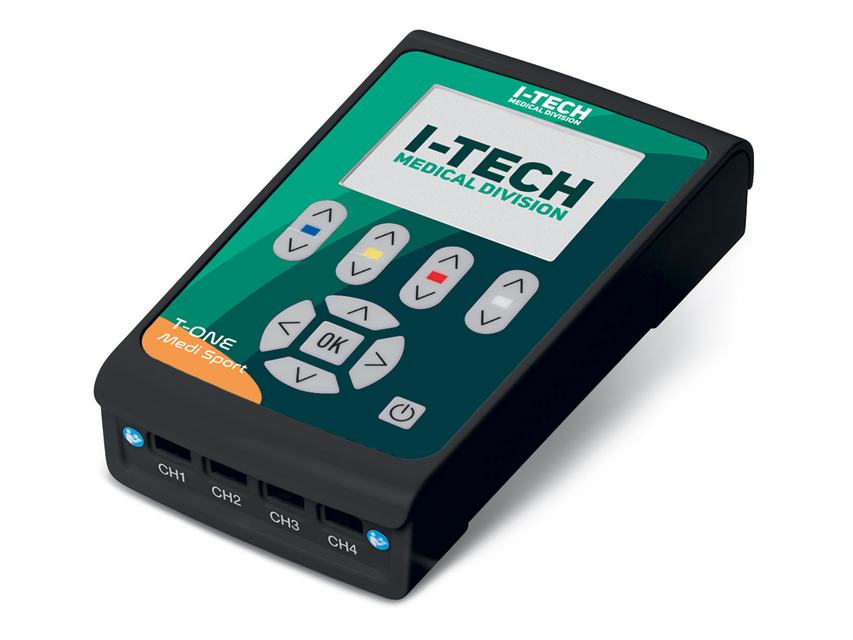I-Tech T-One Medi Sport je 4 kanalni elektroterapijski uređaj za redovite/natjecatelje sportaše i medicinare, osobito za ortopedsku rehabilitaciju, za tretman boli, rehabilitaciju od ozljeda, poboljšanje sportske performanse, fitness i raznovrsne estetske tretmane na tijelu i licu. Slobodne memorije omogućuju samostalno programiranje sa svim bitnim tehničkim programskim parametrima (prema znanstvenim studijama npr).