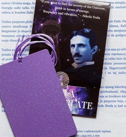 Teslina purpurna ploča veličine 9.3cm x 6.3cm je jedno od najvećih praktičnih dostignuća istraživanja Tesline materijalne i duhovne ostavštine. Nastala je na osnovu njegovih iskustava i saznanja. Ploča je danas jedna jedno od najpoznatijih sredstava u alternativnoj medicini. Prvi su je otkrili Amerikanci.