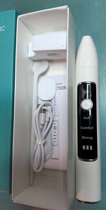 Prodajem ultrazvučni čistač kamenca sa zubiju. Uređaj dolazi s pripadajućim nastavcima i USB kabelom za punjenje. Ima tri načina rada: Soft, Comfort i Strong, što omogućuje prilagodbu intenziteta prema potrebi. Bijele je boje.