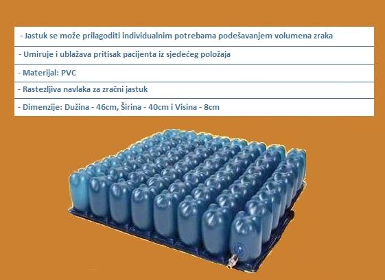 Novi zračni jastuk protiv dekubitisa pogodan za svaka invalidska kolica standardnih dimenzija.U kompletu je pumpa za napuhavanje i navlaka za jastuk