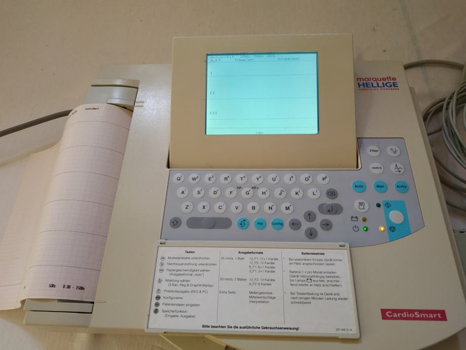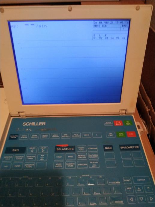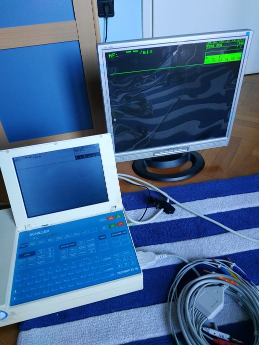 EKG6/12kanalni poznate markee ) i Schiller Display analizom papir,u super dobrom stanju.Saugradjenim programom za mjerenje i to moze :Manuelno ,Automatski i .Tastatura za upis Pacijenata(Bolesnika)Ugradjenim printerom.Kompletan sa Kablom Elektrodama,Moze i sa Vakum Elektrodama koje su puno bolje jer nemorate Lijepiti.Klinicki aparat. 100% ispravan FunkcionalanDR.i. Lijecnici zovite pitajte mi smo specijalisti za med.tehnik.opremu. Moja M-ail Adressa pel@gmx.de.Dir.tel.00491702451975--0919711027