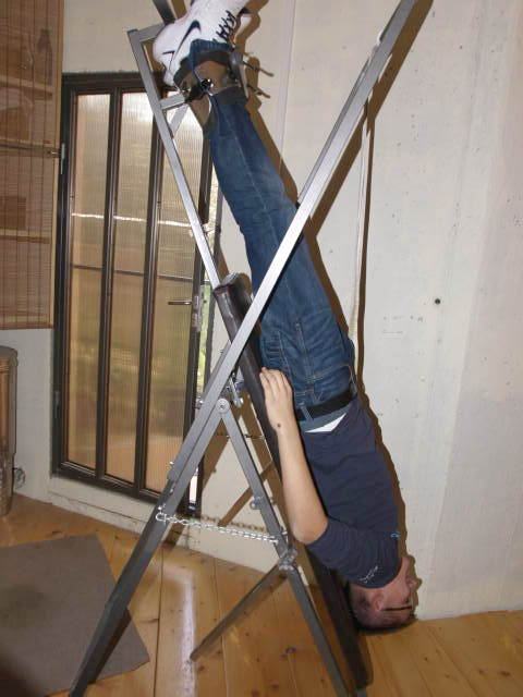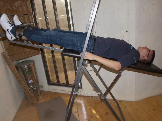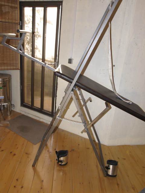 inverzijski stol za dekompresiju kralježnice,vrlo čvrst i kvalitetno napravljen,može se doći vidjeti i isprobati,uz njega dolaze i hvatači za noge