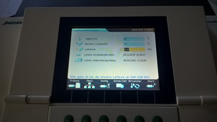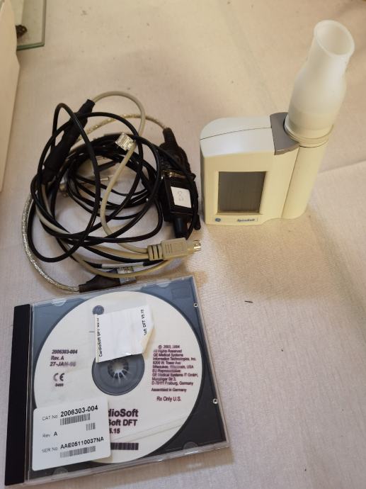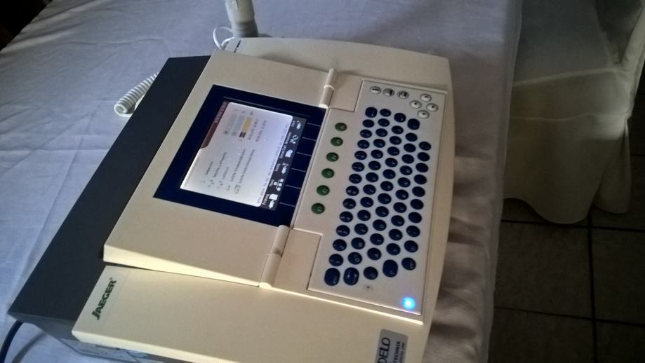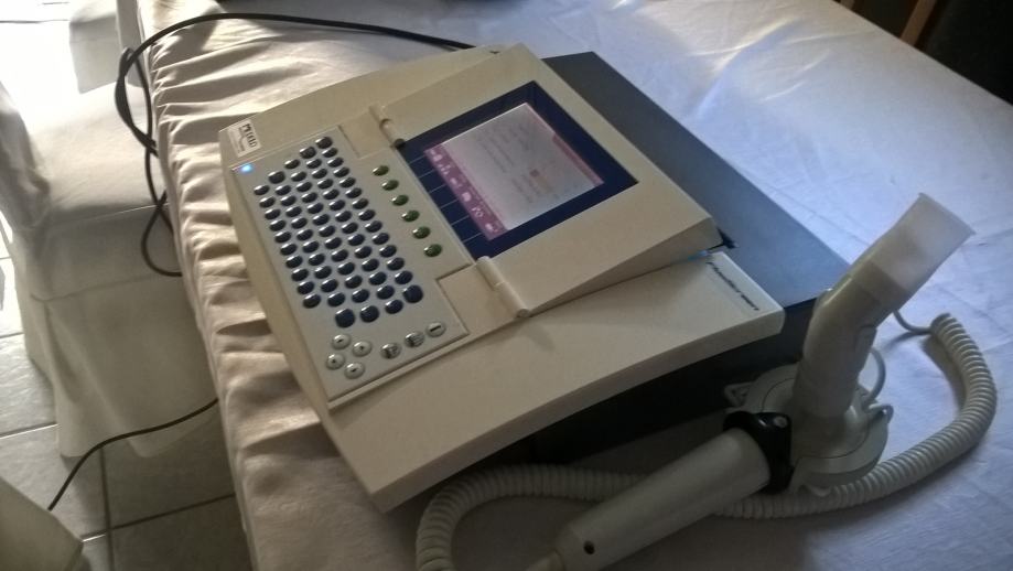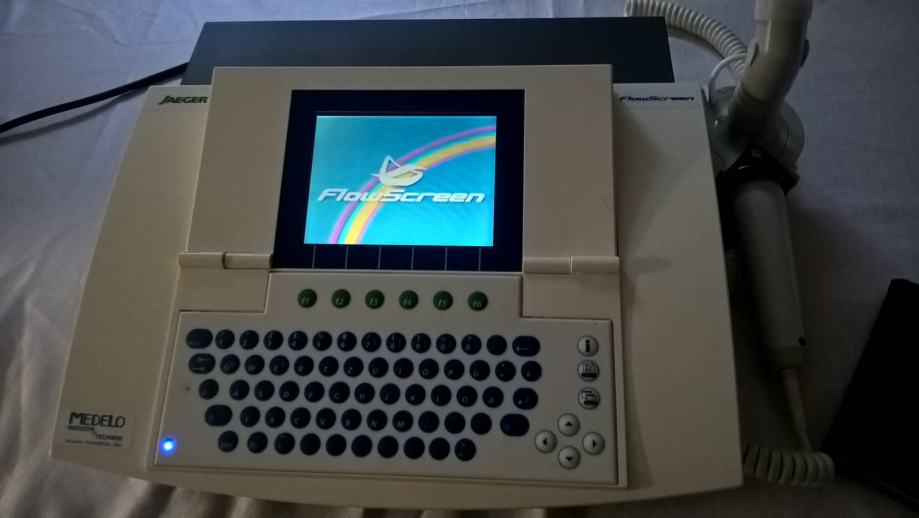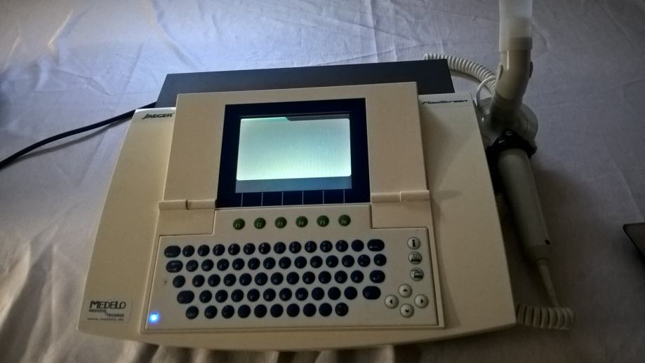 Spirometer za mjerenje svih parametara poznate marke(jaeger) u super stanju malo rabljen.Klinicki aparat.Sa integriranim stampacem i displejem analizom diagnozom. Mjerenje slijedeci Parametara : F/V Kurve MMV Kurve Spirogram Interpretation , Automatsko izdanje i drugo. Dr.i Lijecnici zovite mi smo specijalisti med tech.opreme..Aparat je 100%i ispravno ffunkcionalno
