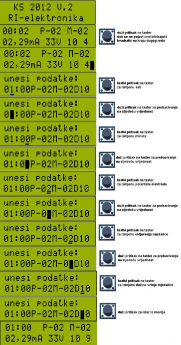 -podešavanje povremenog miješanja otopine u periodama od 0 do 30 minuta i dužini od 1 - 90 sekundi