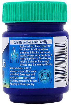 Olakšajte si ozdravljenje od gripe, prehlade, upale pluća i viroze uz umirujući efekt mentola i eukaliptusa koji smiruje bronhije, olakšava tegobe kod alergija, otklanja bolove kod upale mišića, efikasno pomaže kod GLAVOBOLJE (http://safetymom.com/who-knew-vicks-vaporub-can-help-headaches/).