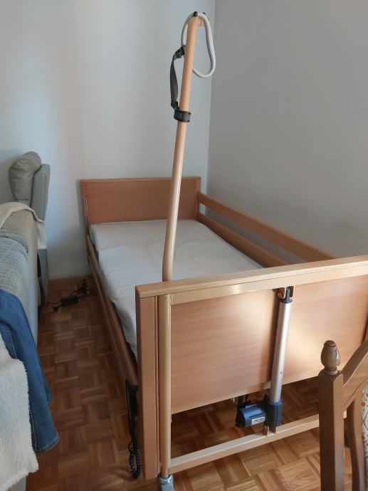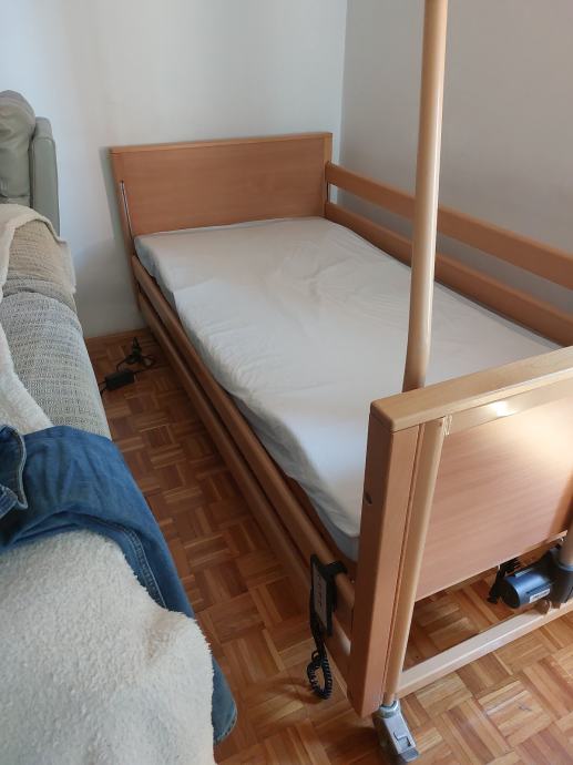 Prodajem malo korišten bolnički krevet s madracem i dekubitus podlogom na zrak s podesivim tlakom. Krevet se diže/spušta i mijenja nagib uzglavlja i nogu pomoću el. motora.