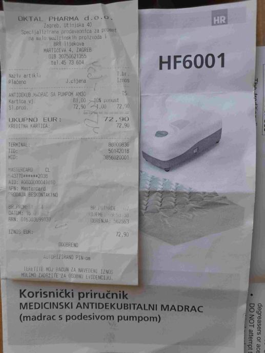 Dekubitalni madrac pod garancijom, korišten 2 mjeseca.
