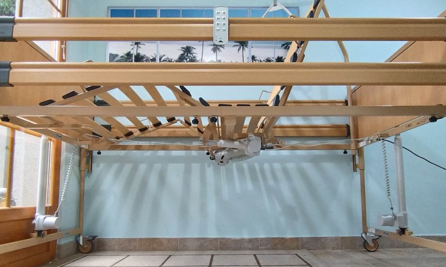 Dva elektromotora, smještena zasebno u bočne stranice kreveta s kotačima, omogućuju podizanje i spuštanje cijele ležeće površine. U najnižem položaju ležište se nalazi 40 cm iznad razine poda, a u najvišem do maksimalno 80 cm. Također je moguće podesiti Anti-Trendelenburg položaj, pri kojemu je glava viša od stopala, što poboljšava cirkulaciju i smanjuje opterećenje srca. Koristi se i kod određenih respiratornih problema.