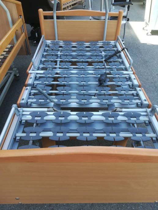 ELEK. PODEŠAVANJE VISINE KREVETA , UZGLAVLJA I UZNOŽJA. KREVET IMA PRATEČE BOČNE OGRADE I TRAPEZ S HVATALJ