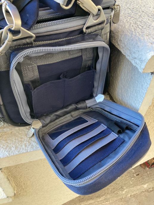 Ima tri vanjska džepa i unutarnje pregrade na čičak koje se lako prilagođavaju po potrebi.