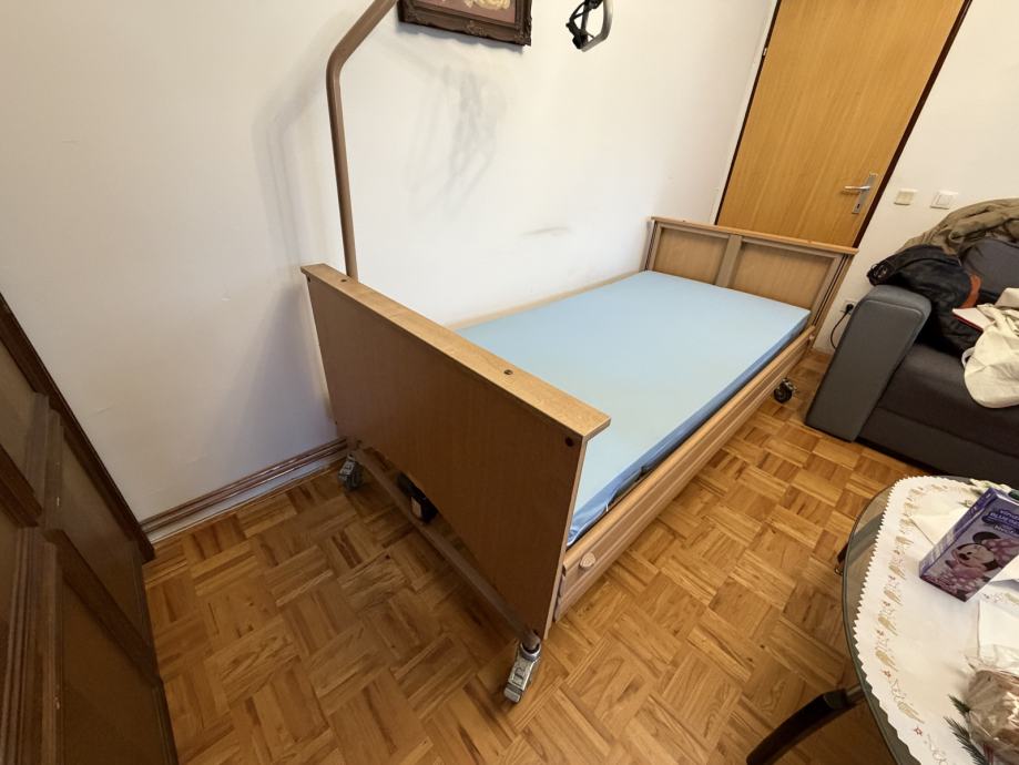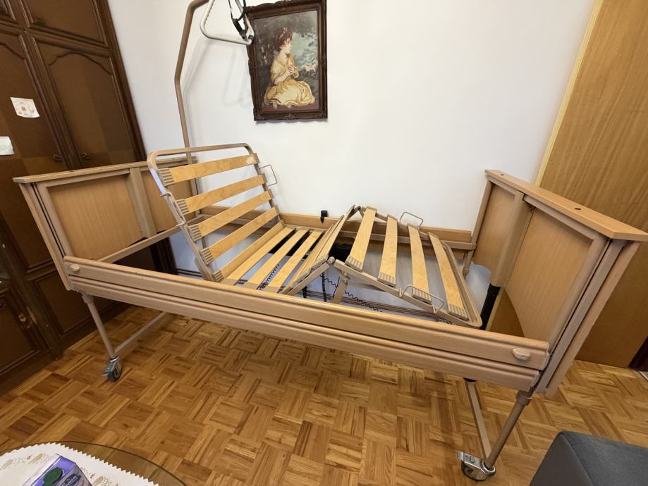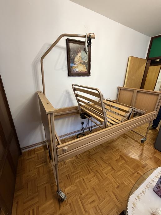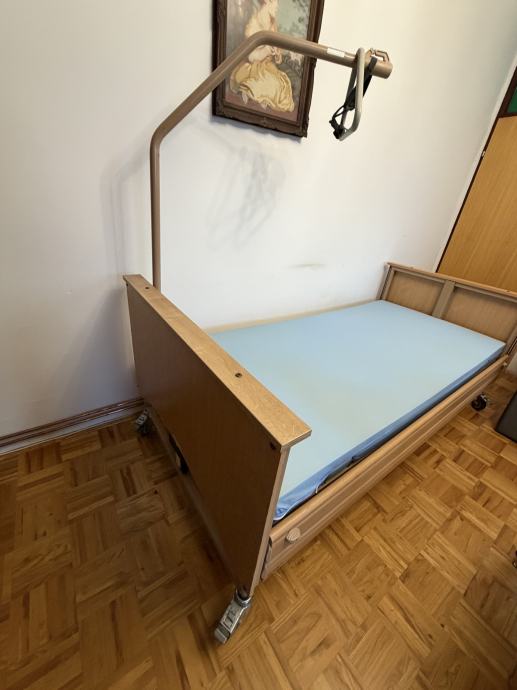 Medicinski krevet, elektricni-podizni, metalni (uzglavlje, uznozje i bocne stranice drvo), daljinsko upravljanje, pomicne bocne masivne stranice, podesiva latoflex podnica, metalni kotaci sa stoperima, demontazni (prijevoz moguc i osobnim vozilom). U cijeni je i nekoristeni novi antidekubitalni madrac te nova nepromociva navlaka. Po kupnji, dobiva se video demontaze/montaze koja je jednostavna i brza. Krevet se nalazi u Varazdinu. Moguca montaza te dostava u Zagreb . Molim iskljucivo poziv.