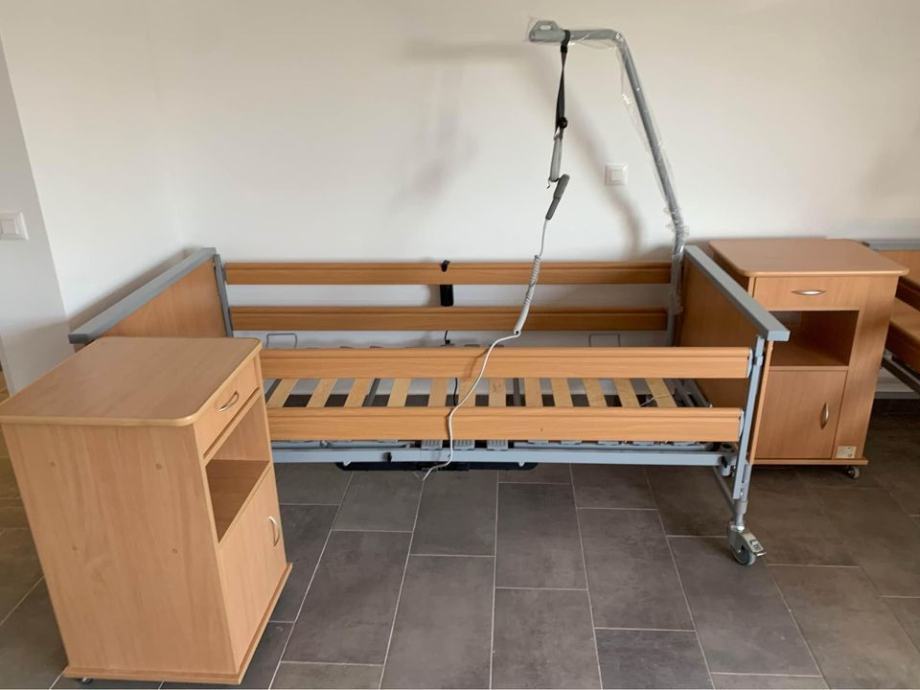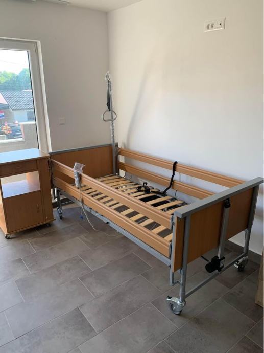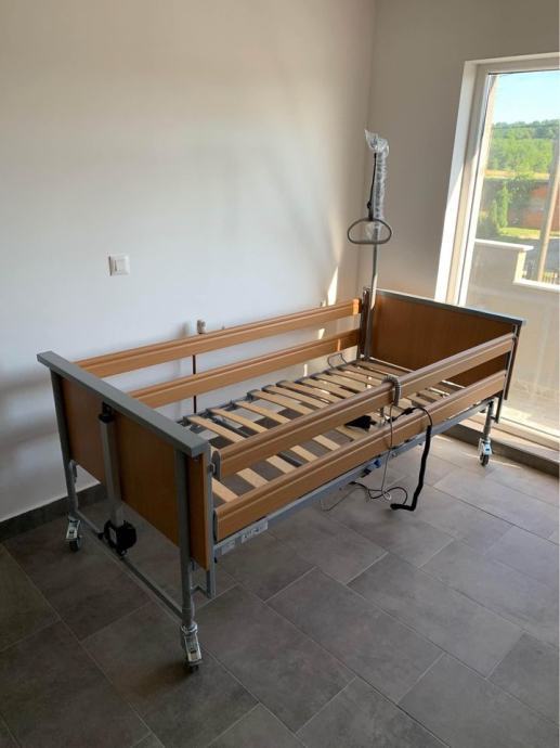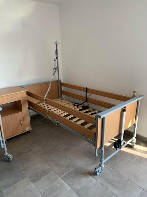 Iznajmljujemo vrhunske medicinske krevete za kućnu njegu, potpuno elektrificirani s mogućnošću podešavanja visine kreveta, kuta uzglavlja i kuta nogu, opremljen ogradama i rukohvatom za lakše samopodizanje.