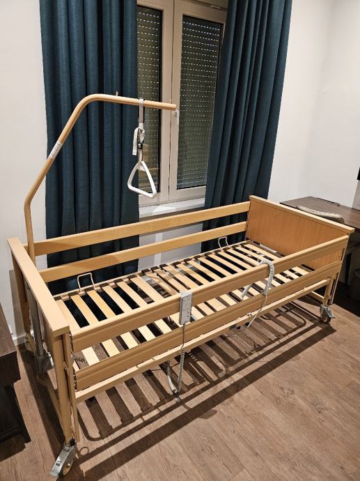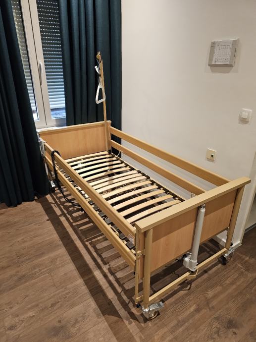 Iznajmljujemo vrhunske medicinske krevete za kućnu njegu, potpuno elektrificirani s mogućnošću podešavanja visine kreveta, kuta uzglavlja i kuta nogu, opremljen ogradama i rukohvatom za lakše samopodizanje.