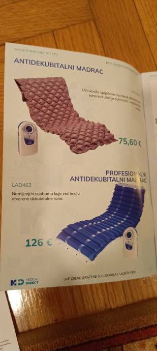 Prodajem rabljeni antidekubitalni madrac Medical Direct za 3. i 4. stupanj dekubitusa .Koristen 5 mjeseci.