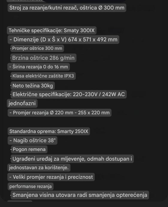 Promjer noža 30cm...na vrhu oštrač za nož, monofazna..snage 242w.