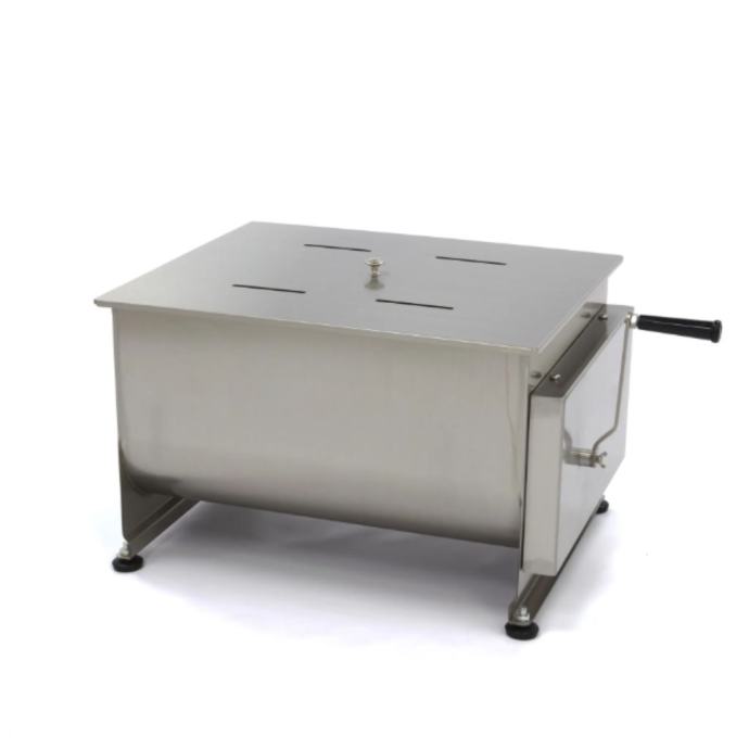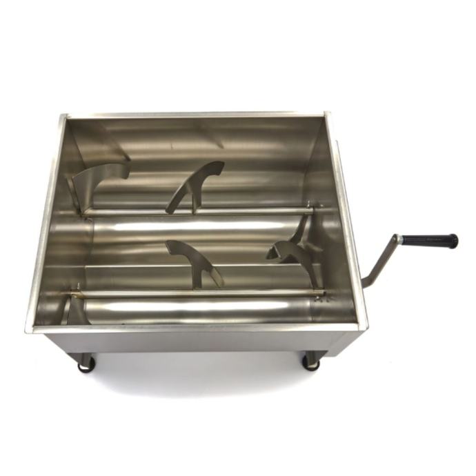 Uz ovu robusnu mešalicu za meso možete brzo i efikasno pomešati meso ili ribu sa začinima i drugim sastojcima. Ako svakodnevno pripremate nadeve, pljeskavice, kobasice ili riblja jela, ova mešalica je idealan dodatak profesionalnoj kuhinji. Uređaj se pokreće ručno, zahvaljujući izdržljivim i čvrstim ručicama za okretanje. Zahvaljujući dvostrukoj osovini, mešalica radi efikasnije i zahteva manje napora pri radu.
