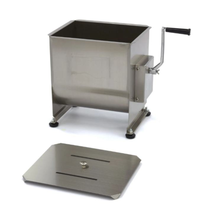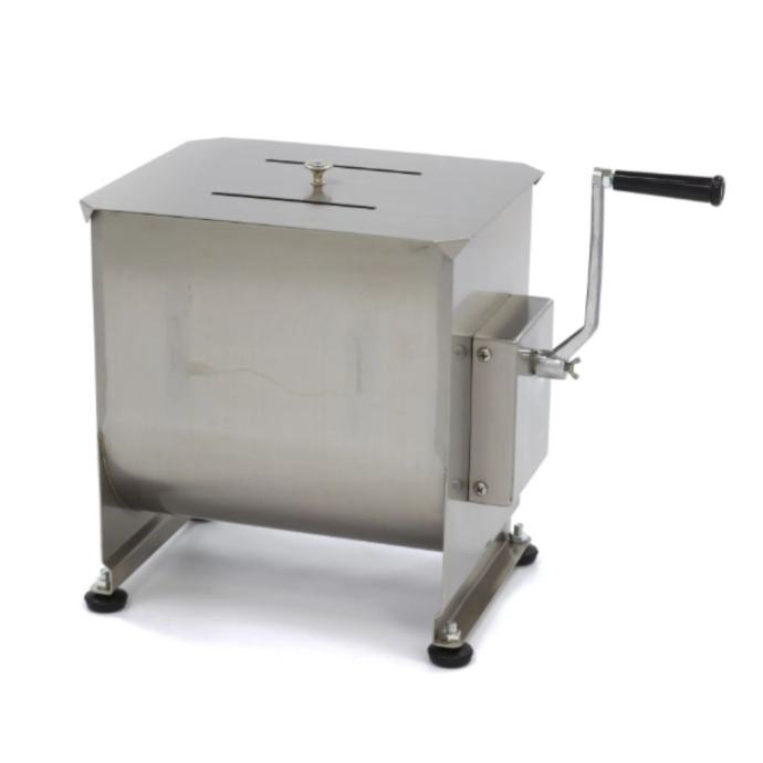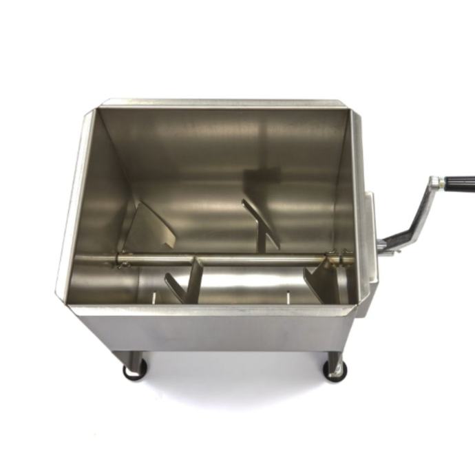 Mešanje mesa u ovoj visokokvalitetnoj mešalici je veoma jednostavno. Najpre otvorite poklopac i stavite željenu količinu mesa u posudu. Vodite računa da ne prekoračite naznačenu maksimalnu količinu, kako bi se meso ravnomerno izmešalo. Posuda ima kapacitet od 30 litara i pogodna je za obradu od 20 do 25 kg mesa ili ribe, u zavisnosti od strukture. Nakon dodavanja mesa, možete ubaciti začinsko bilje, orašaste plodove ili povrće. Da biste sve dobro sjedinili, okrećite praktične ručice dok ne postignete željenu teksturu mesa ili nadeva. Mešalica se može okretati u oba smera.