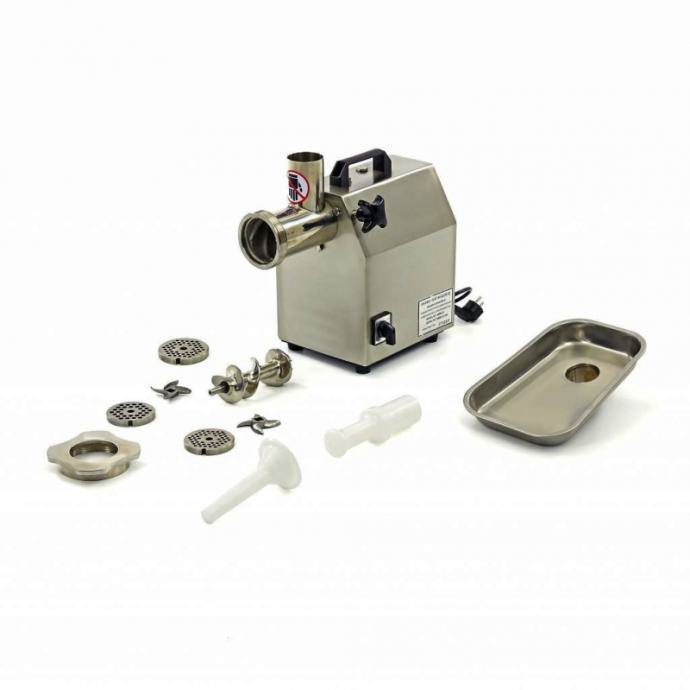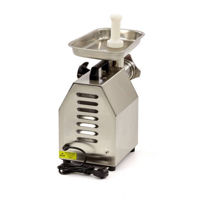 Stroj za mljevenje mesa namijenjen je za profesionalnu upotrebu, s kapacitetom mljevenja od 120 kg/h. Kućište stroja, glava, puž, noževi, sita i korito izrađeni su od nehrđajućeg čelika INOX. Reduktor se nalazi u uljnoj kupki, što doprinosi tišem radu. Sklop noževa uključuje: nož + sito.