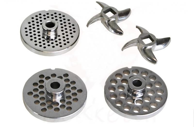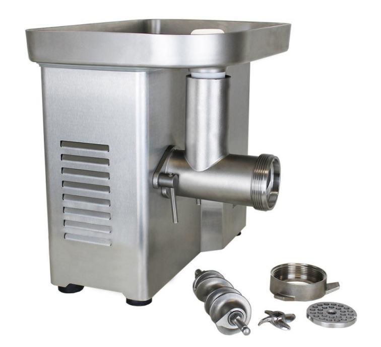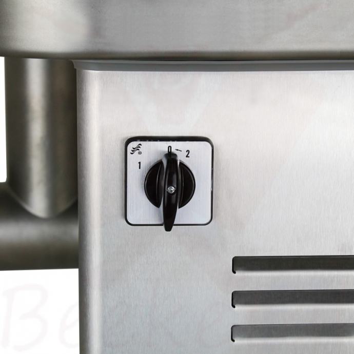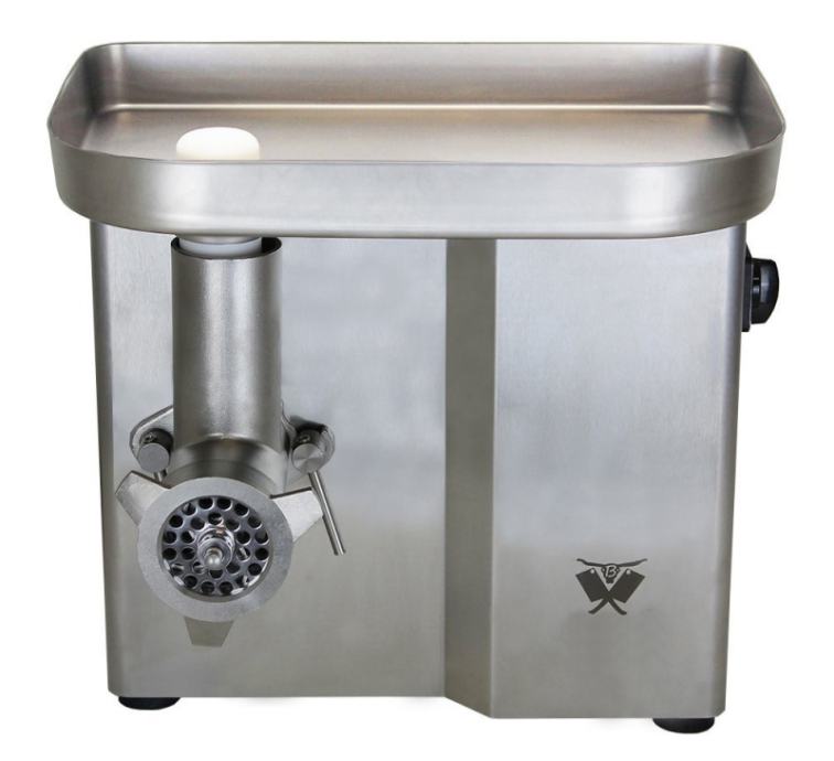 Kapacitet 300 kg/h , snaga motora 900 W. Kućište stroja, puž, noževi, sita i korito su izrađeni od nehrđajućeg čelika, robusno izrađeni. Sklop oštrica se nalazi u kratkoj "glavi", što je znatno bolje od ostalih mesoreznica, jer nema gnječenja i pregrijavanja mesa (organoleptička svojstva). kada, što pridonosi tišem radu . Stroj za rezanje mesa također je opremljen prekidačem za vožnju unazad. (naprijed - nazad). Glava svrdla ima navoje (utore) u smjeru vrtnje što pridonosi lakšem mljevenju i većoj učinkovitosti motora, direktno iz ruku mesara s 20 godina iskustva.