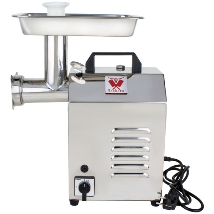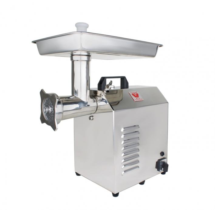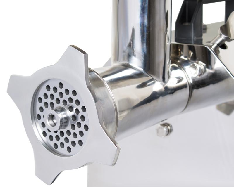 Stroj za mljevenje mesa namijenjen je profesionalnoj uporabi, kapaciteta mljevenja 220 kg/h. Kućište stroja, glava, puž, lopatice, sita i korito izrađeni su od nehrđajućeg čelika. Reduktor se nalazi u uljnoj kupelji, što doprinosi tišem radu. Stroj za rezanje mesa također je opremljen prekidačem za vožnju unazad. (naprijed - nazad). Glava svrdla ima navoje (utore) u smjeru vrtnje što pridonosi lakšem mljevenju i većoj učinkovitosti motora.