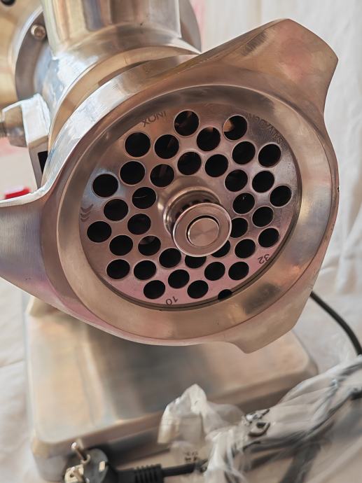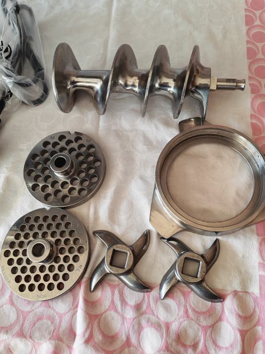 Prodajemo potpuno nove mašine za mljevenje mesa broj 32. U kompletu dolazi šajba 8mm i 10mm i dva noža. Ostale šajbe moguće posebno kupiti, 3, - 4,5-10 - 12, komad je 30 eura, nož 15e.