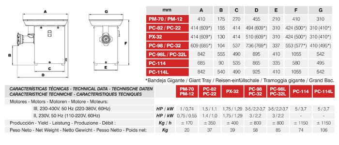 PX-98A: izrađen od 18/10 nehrđajućeg čelika, osim glave za brušenje koja je izrađena od eloksiranog aluminija.