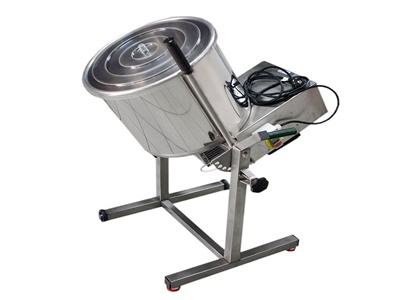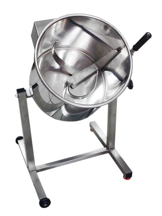 Mješalica za miješanje mesne mase (kobasice, salame) izrađena u cijelosti od nehrđajućeg čelika. Volumen 60 litara. Maksimalno dopušteno opterećenje miješanjem je 25 kg mesa ili 3 - 10 kg brašna . Za lakše i učinkovitije miješanje predviđena je nagibna posuda koja se može nagnuti u bilo kojem položaju. Mješalice su potpuno uklonjive, što olakšava čišćenje. Mješalica je također opremljena kotačima i poklopcem. Zadovoljava sve HACCP kriterije.
