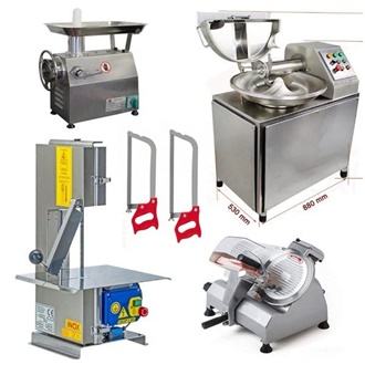 (Mesoreznica, salamoreznica, punilica, mješalica za meso, radni stol, pila za kosti, kuter, )