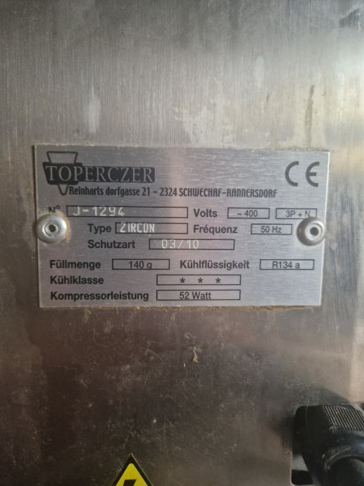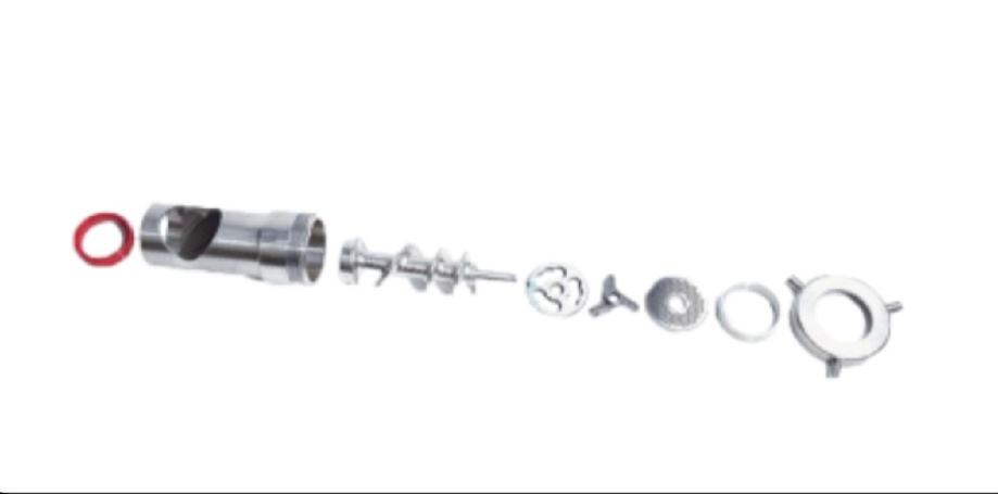 Rashladni shop stroj za mljevenje mesa ZIRCON je u cijelosti izrađen od INOX 18/10 čelika od kućišta do osovine za punjenje. Cijeli uređaj uključujući kutiju za pohranu može se hladiti. Ima snažan motor čiji je precizni zupčanik montiran u zatvorenoj uljnoj kupki, osiguravajući tihi prijenos. Temperatura se može podešavati od 0° do 8° C. Kompresor od 230 V osigurava konstantno hlađenje. Plastični poklopac (zaštita od muha) puževe kućice se može skinuti radi čišćenja. Žlijeb za punjenje je stožast, što olakšava umetanje mljevenog mesa i rezultira većim učinkom po satu. Isporučuje se na 400 V i sa trodijelnim reznim setom Unger H82 (perforirani disk INOX 3 mm, predrezač, samooštreći nož, odstojni prsten).