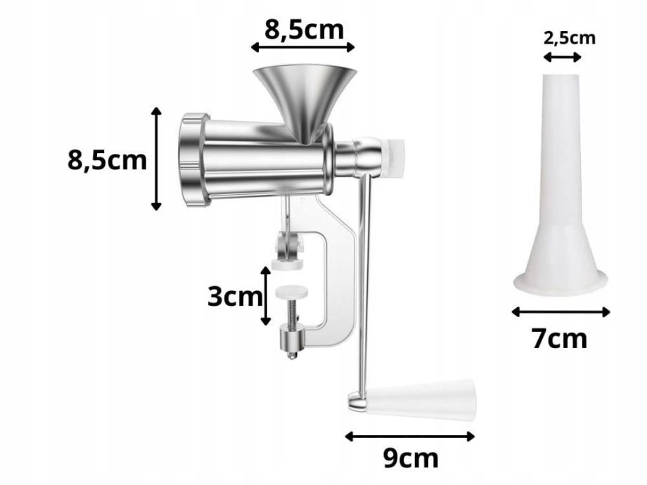 Osim toga, aparat za brijanje opremljen je posebnim vrhom za kobasice, koji vam omogućuje pripremu domaćih mesnih proizvoda kao što su kobasice ili paštete. Funkcionalan je i pouzdan alat, idealan za ljubitelje tradicionalnog načina kuhanja i pripreme domaćih slastica.