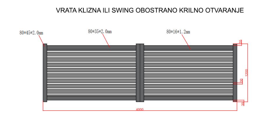 Cijena Alu vrata 4 × 1,2 m visine (4,8 m2) 2500 € + PDV (Ostale dimenzije na upit)