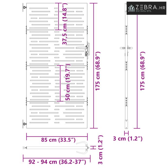 Ova metalna vrtna vrata su kombinacija sigurnosti i stila, sjajan izbor za moderne vrtove. Njihov elegantan i minimalistički izgled odlično se uklapa u različite teme vrtova i dvorišta, držeći tvoj prostor sigurnim, a istovremeno šik. Savršena su za označavanje granica ili stvaranje upečatljivog ulaza, dodajući praktičnost i šarm svakom vanjskom prostoru.