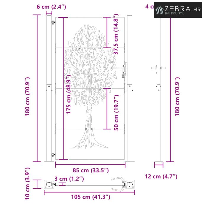 Izdržljiv dizajn: Ova vrata su napravljena da traju. Njihova otpornost na hrđu održava ih lijepima čak i nakon dugotrajnog izlaganja vremenskim uvjetima. Manje hrđe znači manje brige oko održavanja, pa možete uživati u svom vrtu bez stalnog posla.