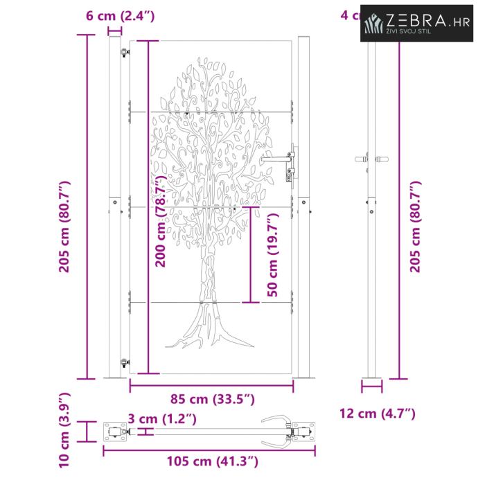 Izdržljiv dizajn: Ova vrata su napravljena da traju. Njihova otpornost na hrđu održava ih lijepima čak i nakon dugotrajnog izlaganja vremenskim uvjetima. Manje hrđe znači manje brige oko održavanja, pa možete uživati u svom vrtu bez stalnog posla.